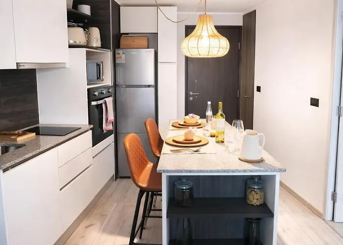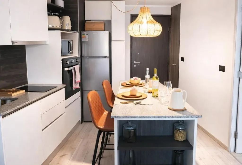 Cozinha totalmente equipada é fornecida nos quartos deste apartamento. O apartamento Moderno y cómodo para dos con gran conectividad está muito perto da estação estação de autocarro Estacion Intermodal Lo Ovalle.